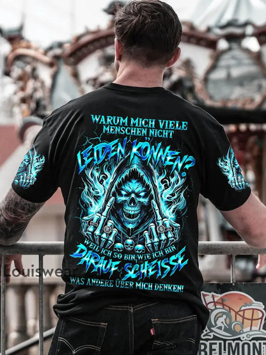 Männer Eisernes Kreuz Schädel Print Polo-Shirt