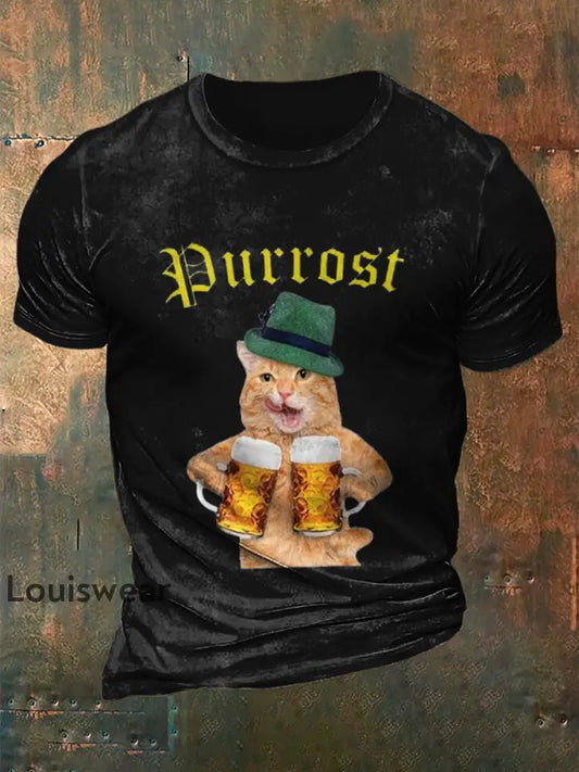 Herren Bierfest Lustiges Katzen-Print-Shirt