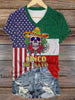Damen Cinco De Mayo Bedrucktes Kurzarm T-Shirt mit V-Ausschnitt