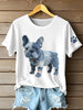 Damen Denim Patchwork Kunst Französische Bulldogge Muster T-Shirt