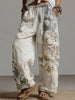 Damen Vintage Rose Floral Art Casual Weite Bein Hosen