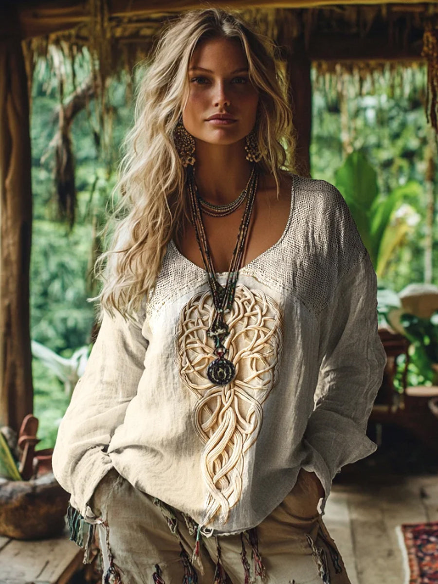 Damen Vintage U Wikinger Baum des Lebens Kunst Baumwolle und Leinen T-Shirt