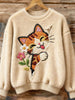 Damen Vintage Weihnachten Tier Kunst Druck Komfortable Freizeit Pullover