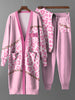 Dreiteiliges Damen-Vintage-Set aus rosafarbener Leoparden muster