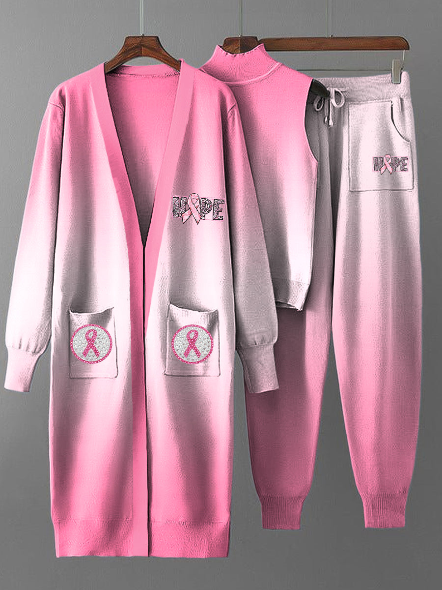 Dreiteiliges Damen-Vintage-Set mit rosafarbener Farbband