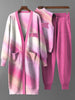 Dreiteiliges Damen-Vintage-Set mit rosafarbener Steigung gestreifter Mantel