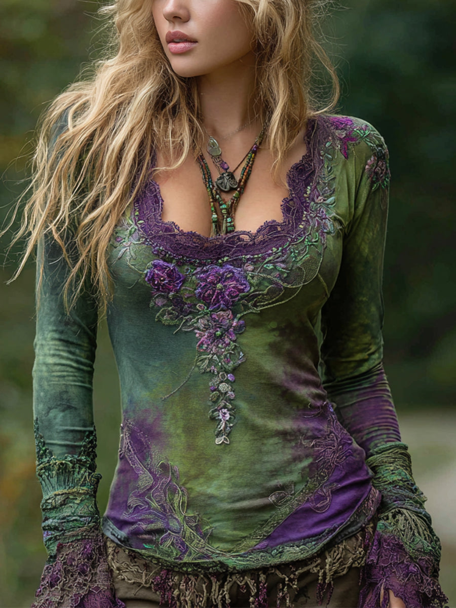 Elegantes, mit Blumen besticktes Damen-Vintage-Hemd