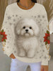 Frauen niedliche Hunde kunst Geripptes Rundhals-Sweatshirt