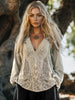 Frauen Vintage Tribal Keltisches Knoten Spitze Patchwork V-Ausschnitt Leinen hemd