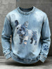 Herren Denim Patchwork Kunst Französische Bulldogge Muster Sweatshirt