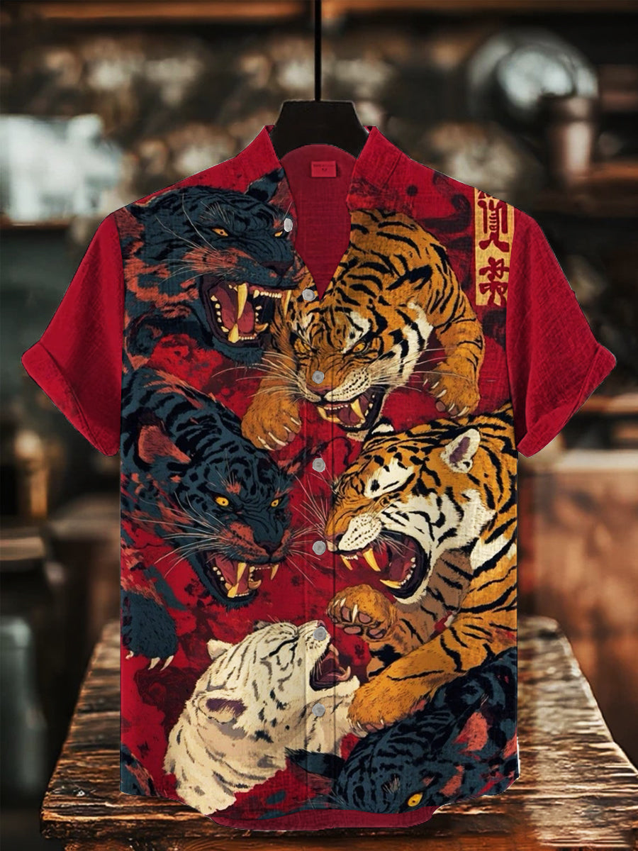 Herren Japanische Kunst Tiger Bedrucktes Hemd