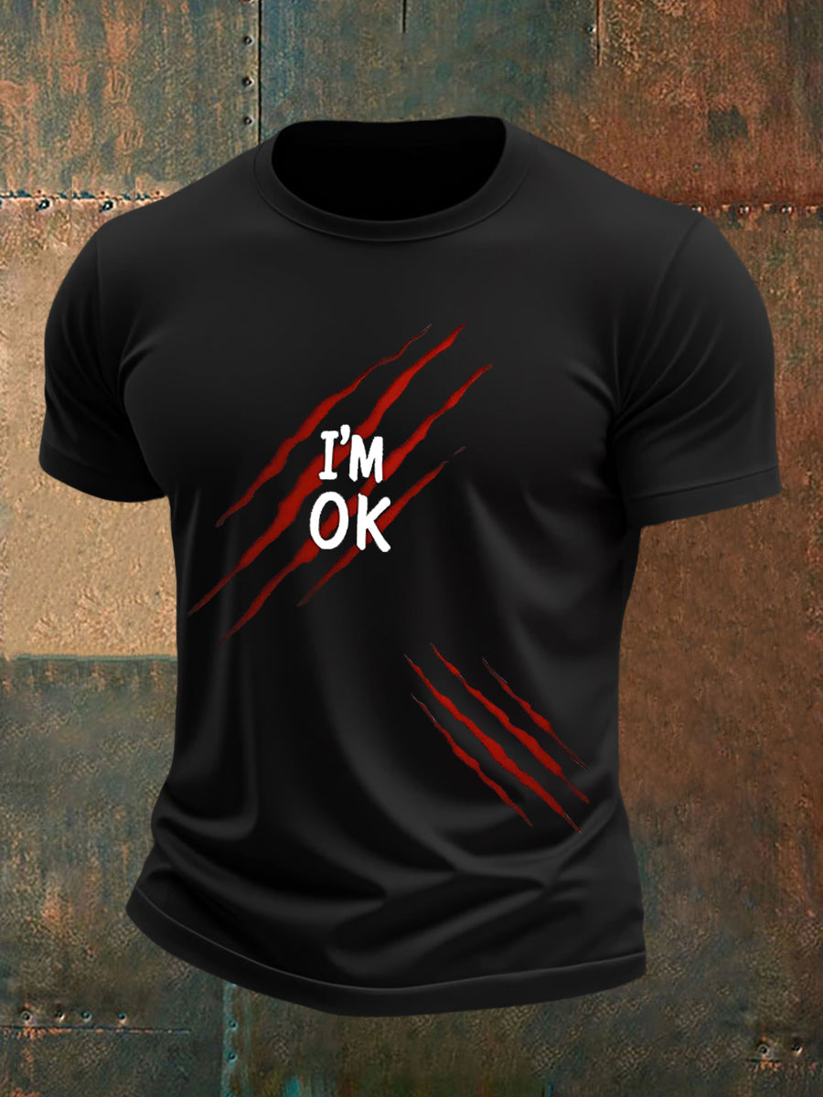 Herren Lustiges Halloween Ich bin OK Scratch Print Casual T-Shirt