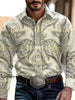 Herren Outdoor Vintage Western Ethnic Lily Blumenmuster Lässiges Baumwoll-Langarm-Hemd