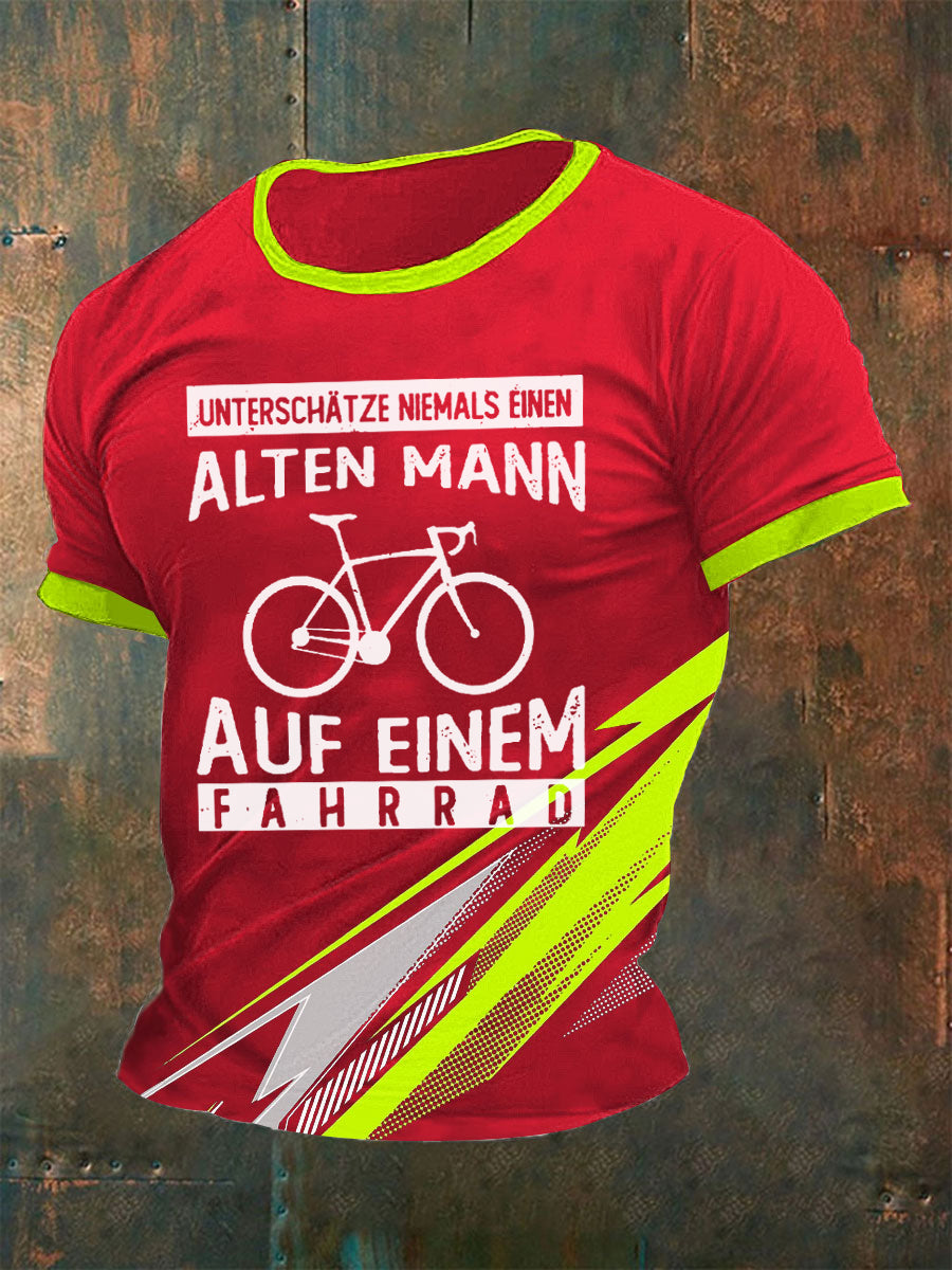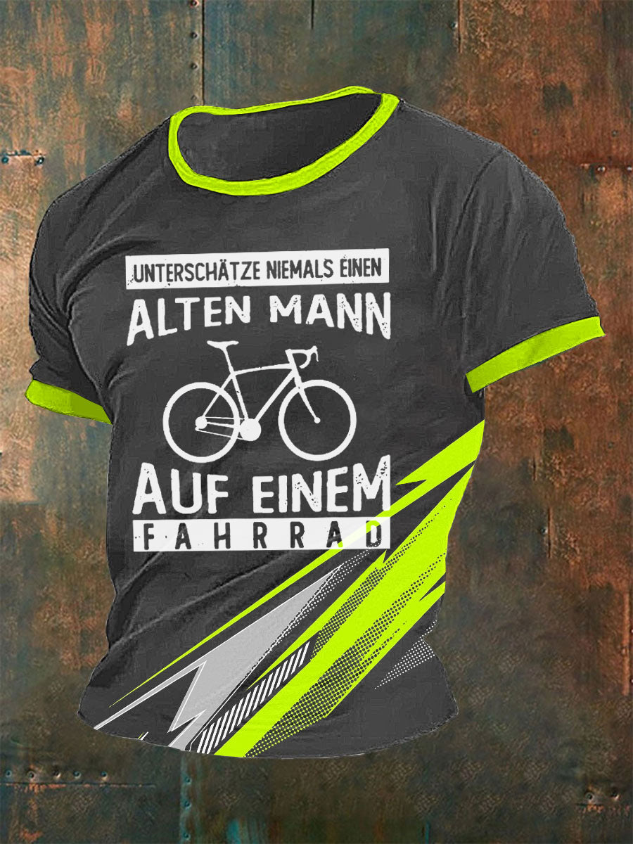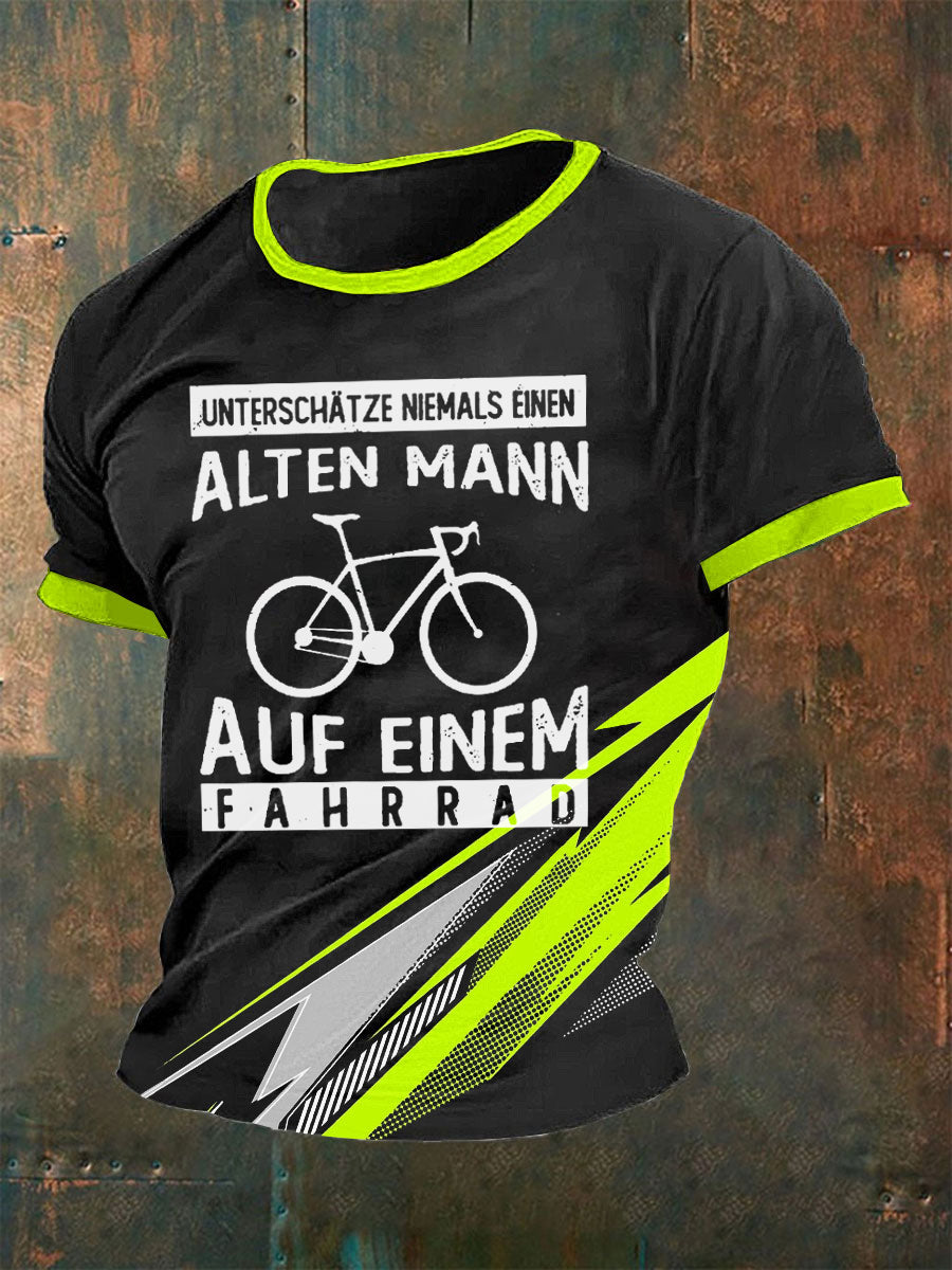 Herren-T-Shirt Alter Mann Auf Einem Fahrrad