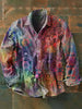 Herren Vintage Ethnische Wirbel Kreis druck Lässiges Revers Langarm Hemd