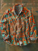 Herren Vintage Mehrfarbiges unregelmäßiges Wirbel-Kunstdruck-Revers-Langarm-Taschen hemd