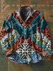 Herren Vintage Tribal Ethnic Print Lässiges Revers-Langarm-Shirt