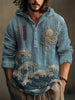 Langärmliges Herren hemd Japaness Kunst bedruckt