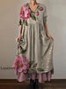 Retro Boho Blumen botanik Print Vintage V-Ausschnitt Doppel-Saum Baumwolle Langarm Midi-Kleid