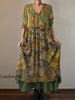 Retro Boho Blumen druck Vintage V-Ausschnitt Doppel-Saum Baumwolle Langarm Midi-Kleid