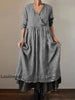 Retro Einfacher Fransen druck Vintage V-Ausschnitt Doppel-Saum Baumwolle Langarm Midi-Kleid