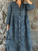 Retro Floral Art Print Vintage schick V-Ausschnitt mit Knöpfen nach oben Langarm Midi-Kleid