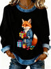 Retro Weihnachten niedlich Fox Patchwork Design gedruckt lässig lose lange Ärmel Sweatshirt
