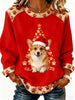 Retro Weihnachten niedlich Hund Patchwork Design gedruckt lässig lose lange Ärmel Sweatshirt