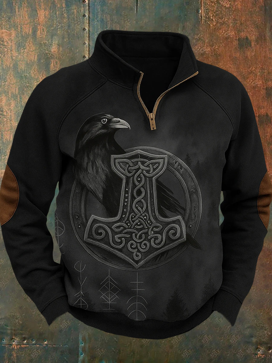 Sweatshirt mit Reiß verschluss Sweatshirt mit schwedischem Viking-Druck-Stand kragen