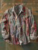 Unisex Ethnische Stil Spleißen Vintage bedruckte Revers Langarm Taschen hemd
