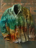 Unisex Herren Vintage Western Gradient Grün Abstrakt Print Lässiges Langärmliges Hemd