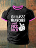 Unisex Ich Hasse Menschen Print Vintage Mode Kurzarm T-Shirt