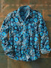 Unisex Vintage Abstrakt Blau Floral Art Print Revers Langarm Taschen hemd