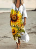Vintage Bohemian-Blumen druck mit V-Ausschnitt Elegantes schickes, lockiges Midi-Kleid