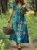 Vintage Bohemian-Blumen druck mit V-Ausschnitt Elegantes schickes, lockiges Midi-Kleid