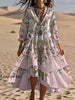 Vintage böhmisches V-förmiges Kleid mit Blumen kunst, lässiges elegantes Mode-Doppel kleid