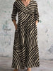 Vintage Kunstdruck Chic V-Ausschnitt Dreiviertel-Ärmel Elegantes Midi-Kleid