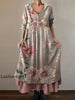 Vintage Rundhals böhmischer Blumen druck Elegantes schickes, lockiges Midi kleid