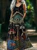 Vintage V-Ausschnitt Böhmischer Blumen kunst druck Elegantes schickes, lockiges Midi-Kleid